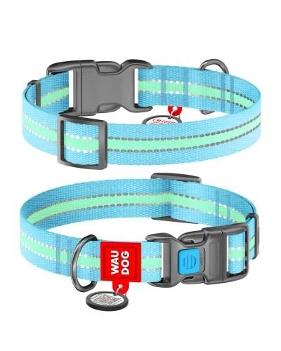 Нашийник для собак нейлоновий WAUDOG Nylon з QR паспортом, світонакоплювальний, пластиковий фастекс, Ш 20 мм, Дов 24-40 см,