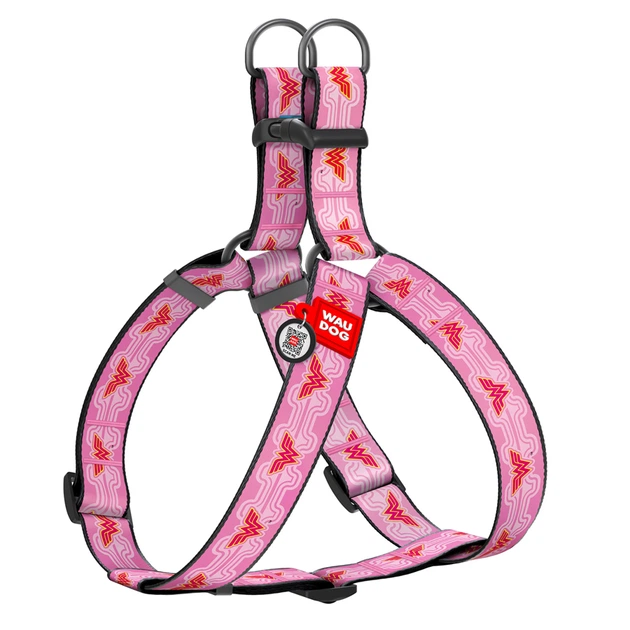 Шлей для собак WAUDOG Nylon з QR паспортом малюнок "Чудо-жінка 1" пластиковий фастекс XL Ш 35 мм А=В 70-100 см