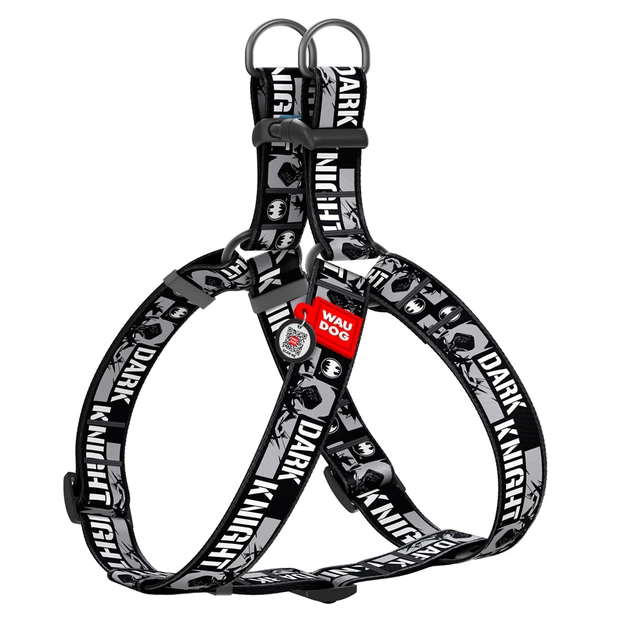 Шлей для собак WAUDOG Nylon з QR паспортом малюнок "Темний лицар" пластиковий фастекс XL Ш 35 мм А=В 70-100 см