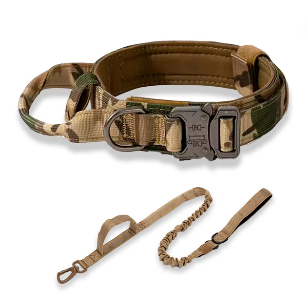 Комплект тактичний нашийник + повідець 100-150 см. для собак з металевою фурнітурою мультикам XL (50-60 см)