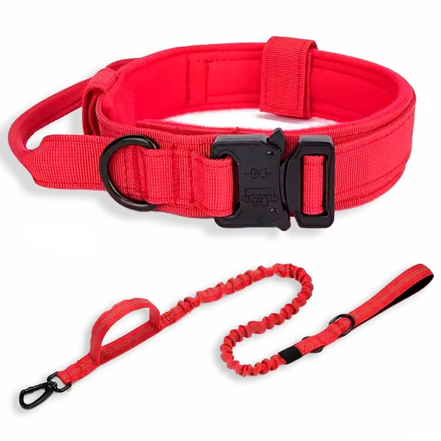 Комплект тактичний нашийник + повідець 100-150 см. для собак з металевою фурнітурою червоний L (42-54 см)