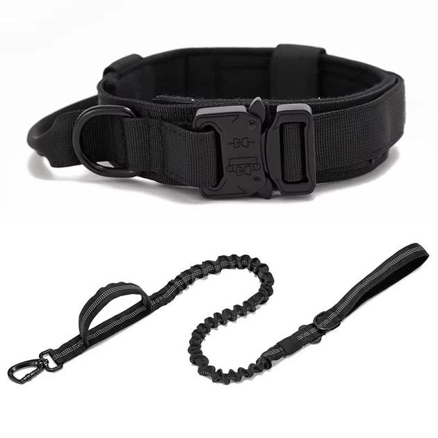 Комплект тактичний нашийник + повідець 100-150 см. для собак з металевою фурнітурою чорний М (36-48 см)