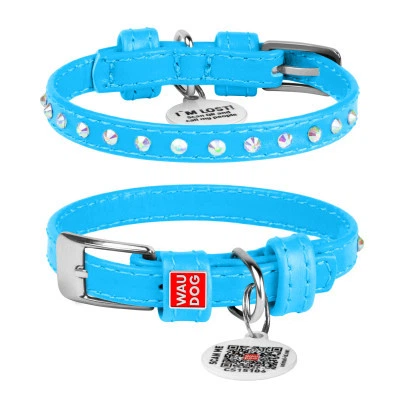 Нашийник для тварин WAUDOG Glamour з QR-паспортом з стразами М Ш 20 мм Д 30-39 см блакитний (32782)