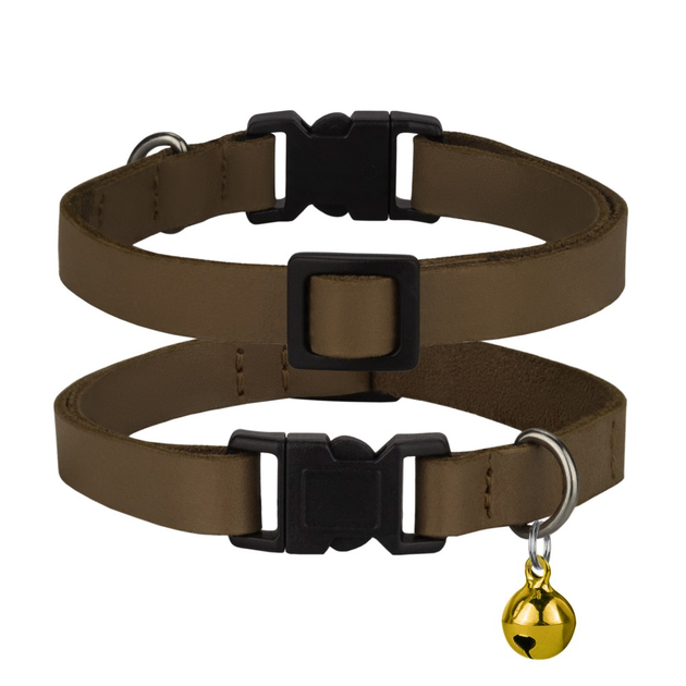 Нашийник для Котів Шкіряний Плоский BronzeDog Crazy з Золотим Дзвіночком Коричневий (46155)