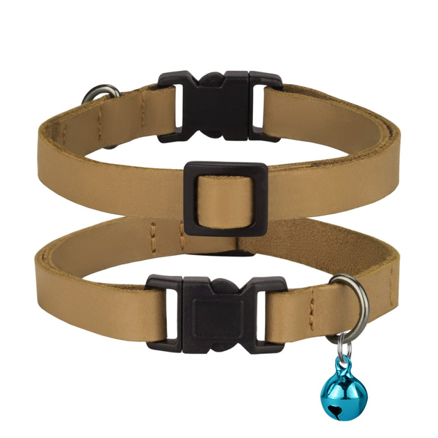 Нашийник для Котів Шкіряний Плоский BronzeDog Crazy з Золотим Дзвіночком Світло-Коричневий (46118)