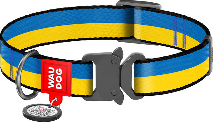 Нашийник для собак нейлоновий WAUDOG Nylon з QR паспортом малюнок "Colors of freedom" металева пряжка-фастекс M Ш 20 мм Дов