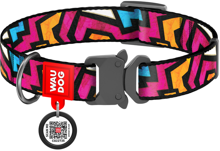 Нашийник для собак нейлоновий WAUDOG Nylon з QR паспортом малюнок "Графіті" металічна пряжка-фастекс Ш 20 мм Дов 28-40 см (5