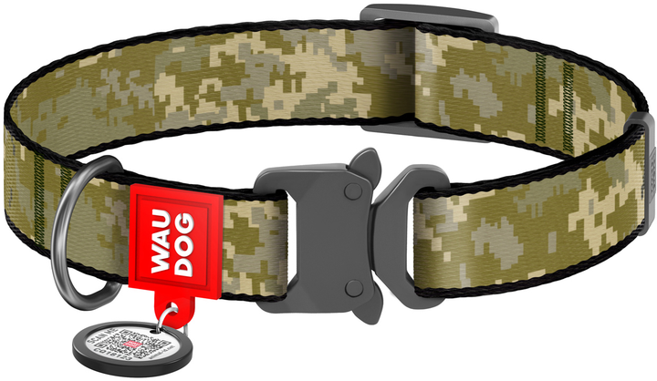 Нашийник для собак, нейлоновий WAUDOG Nylon із QR-паспортом, принт "Мілітарі", металевий фастекс, M, ширина 20 мм, довжина 2
