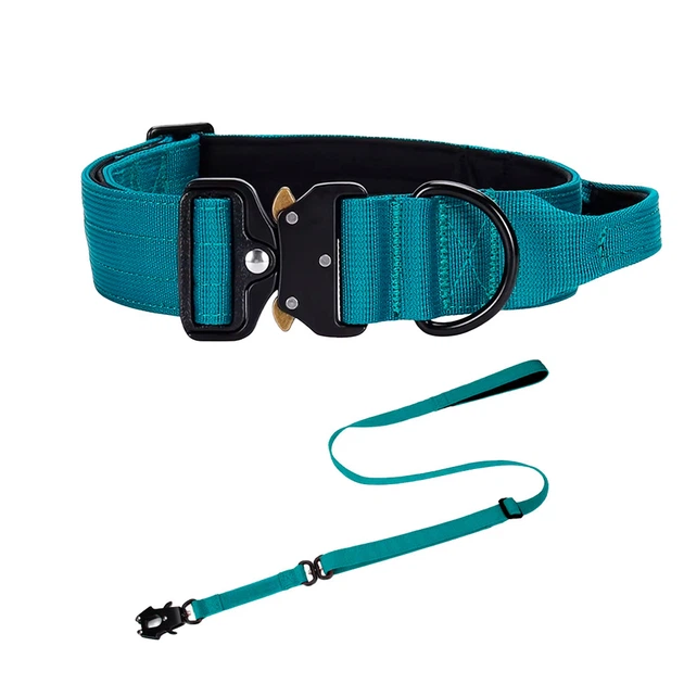 Комплект нашийник + повідець 1,5 м. для собак з металевою фурнітурою зелений М (38-46 см.)