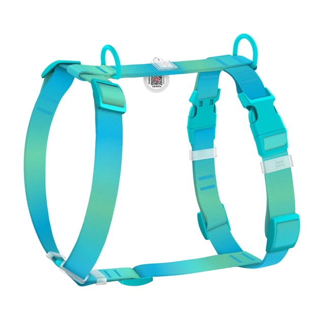 Шлея для собак анатомічна H-подібна WAUDOG Nylon Recycled блакитний градієнт, L (стрічка 25 мм; шия 51–85 см; груди 60–85 см