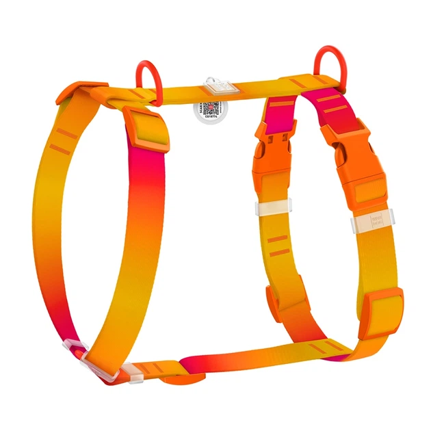 Шлея для собак анатомічна H-подібна WAUDOG Nylon Recycled помаранчевий градієнт, L (стрічка 25 мм; шия 51–85 см; груди 60–85