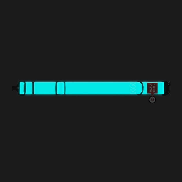 Нашийник для собак гігантських порід WAUDOG Waterproof Glow, ментоловий, світлонакопичувальний, QR-паспорт, металева пряжка-