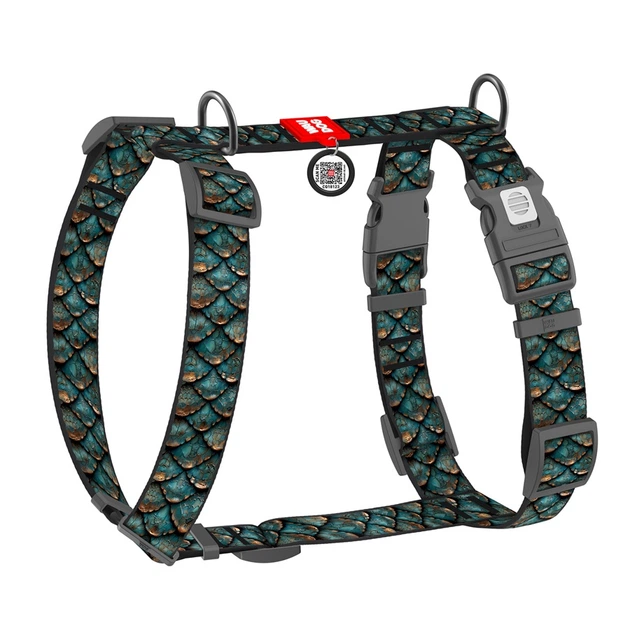 Шлей для собак анатомічний H-подібний WAUDOG Nylon з QR адресником, малюнок "Луска", пластиковий фастекс, XL, Ш 35 мм, А 60-