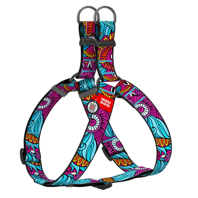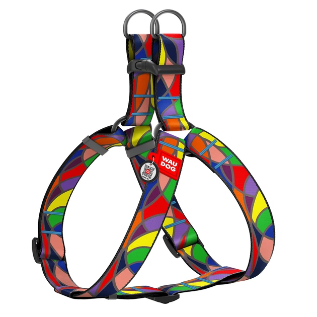 Шлей для собак WAUDOG Nylon з QR паспортом малюнок "Вітраж" пластиковий фастекс XL Ш 35 мм А=В 70-100 см
