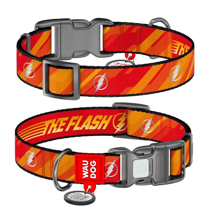 Нашийник для тварин WAUDOG Nylon з QR паспорто "Флеш Лого", світловідбивний L (282-1083) 282-1083