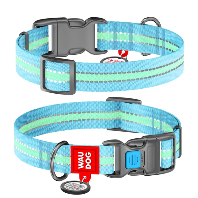 Нашийник для собак нейлоновий WAUDOG Nylon з QR паспортом, світлонакопичувальний/світловідбивний, пластиковий фастекс, Ш 15
