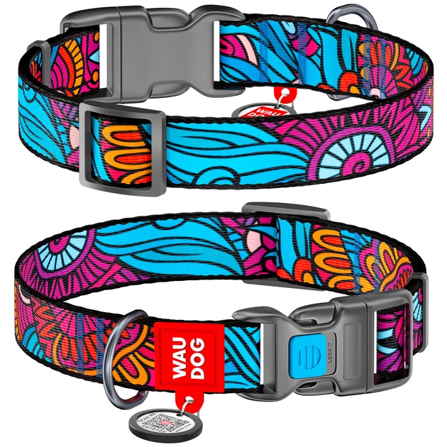 Нашийник для собак нейлоновий WAUDOG Nylon з QR паспортом, малюнок "Вітраж", пластиковий фастекс, L, Ш 25 мм, Д