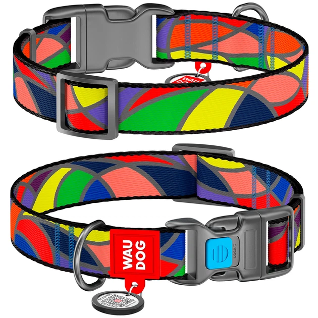 Нейлоновий нашийник для собак WAUDOG Nylon (ВАУДОГ Нейлон) з QR паспортом, з малюнком "Вітраж" 37-58 см 25 мм (4581)