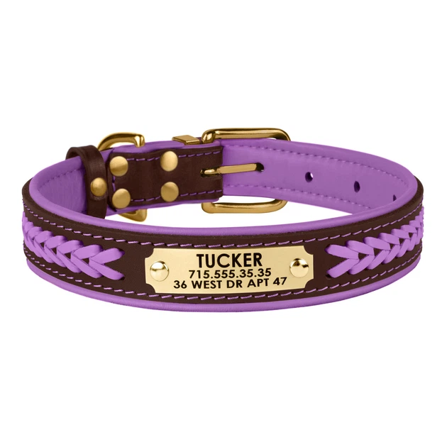 Нашийник для Собак Шкіряний Barksi BronzeDog Premium з Литою Латунною Фурнітурою та Адресником Коричнево-Фіолетовий L(61079/