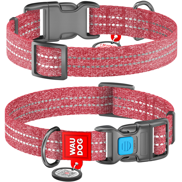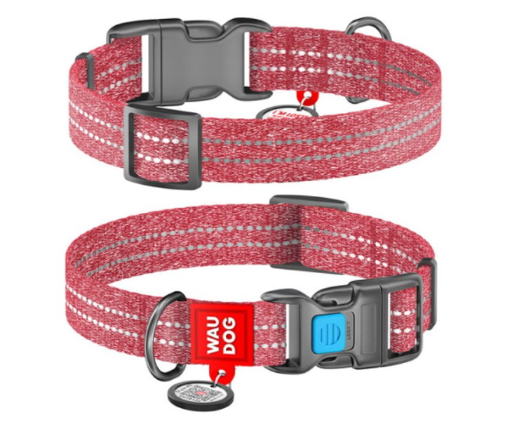 Нашийник WAUDOG Re-cotton з QR паспортом, відновлена бавовна, пластикова пряжка (ширина 20 мм, довжина 28-40 см), М, червони