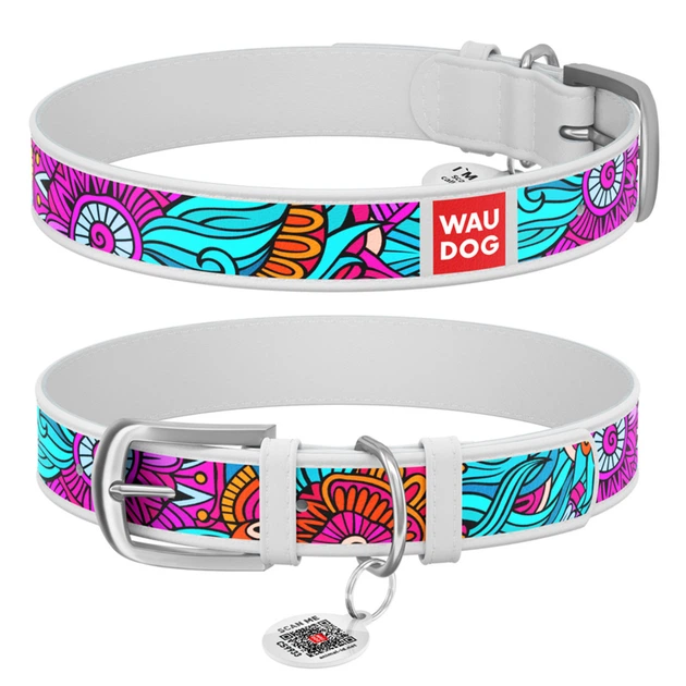 Нашийник для собак шкіряний WAUDOG Design з QR паспортом, малюнок Літо ХL, Ш 35 мм, Дл 46-59 см білий