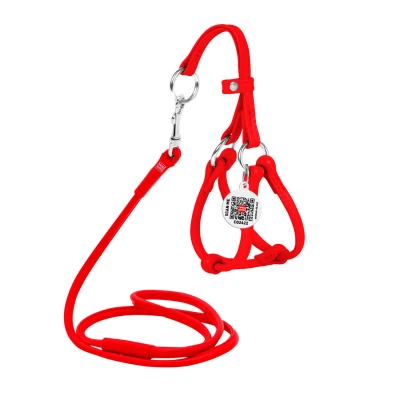Набір "Soft Style", M, повідець+шлейка, повідець (ширина: 1,5 см, довжина: 120 см, нейлон, червоний), шлейка (ширина - 1,5 с