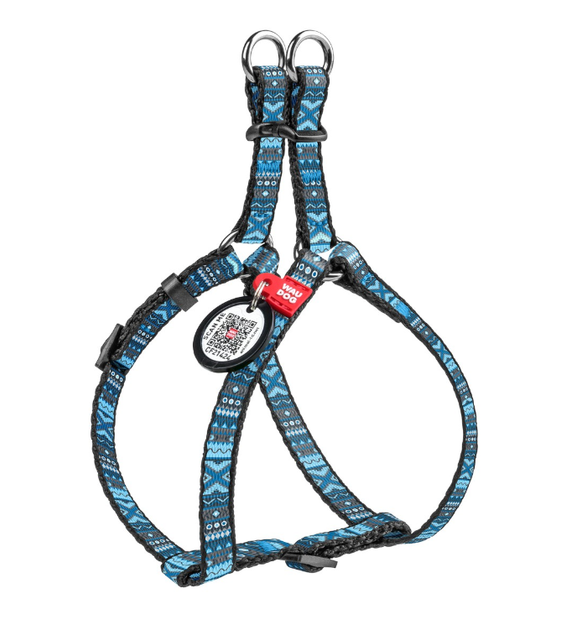 Шлей з QR-паспортом "Етно синій" для дрібних порід собак і котів ширина 10мм