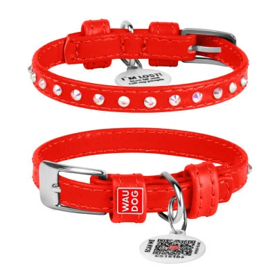 Нашийник для тварин WAUDOG Glamour з QR-паспортом з стразами L Ш 25 мм Д 38-49 см червоний (32793)
