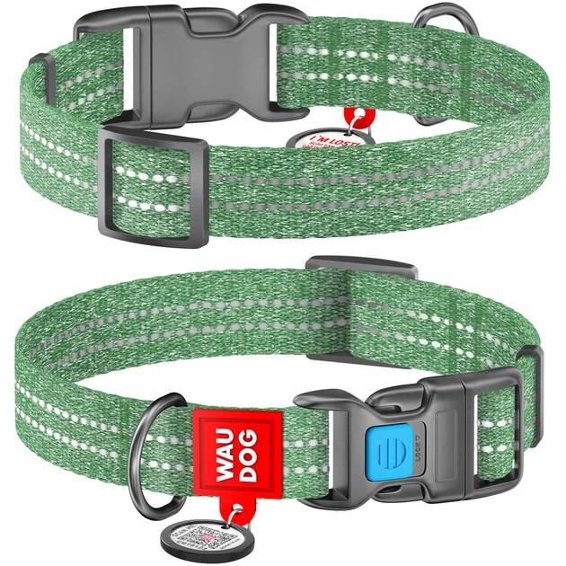 Ошейник для собак із відновленого бавовни WAUDOG Re-cotton з QR паспортом, світловідбиваючий, пластиковий фастекс, Ш 25 мм,