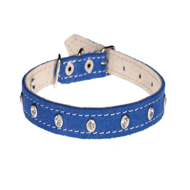 Нашийник Елегант Вірний друг шкіряний одинарний прикрашений стразами синій для вигулу собак 21-27 см (1415)