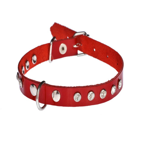 Нашийник Елегант Вірний друг шкіряний одинарний прикрашений стразами червоний для вигулу собак 21-27 см (1312)