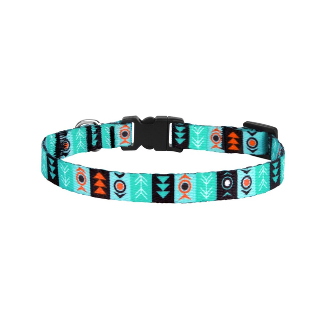 Нашийник для котів та собак Bronzedog Urban з пластиковою пряжкою та дзвіночком індіанці інки 10 мм 49/1336