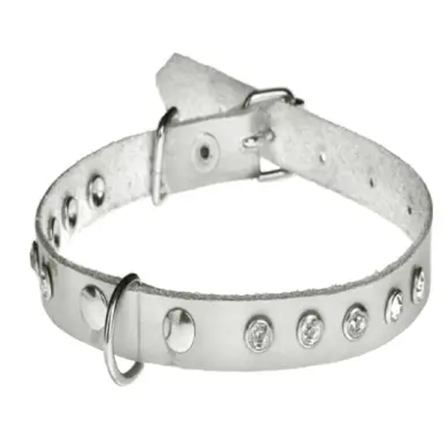Нашийник Елегант Вірний друг шкіряний одинарний прикрашений стразами білий для вигулу собак 21-27 см (1414)