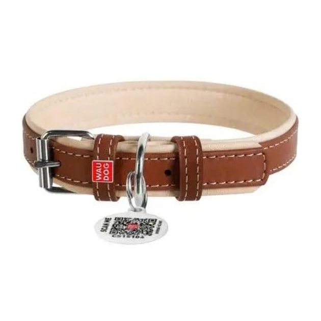 Шкіряний нашийник Collar Waudog Soft без прикрас(коричневий) S Ш15мм,Д27-36см
