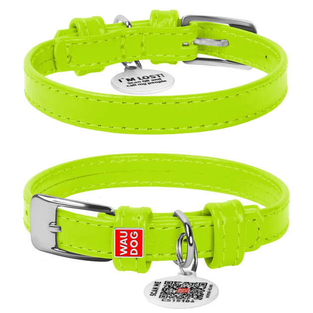 Шкіряний нашийник для собак WAUDOG Glamour з QR паспортом без прикрас XS Ш 12 мм 21-29 см Green (32565)