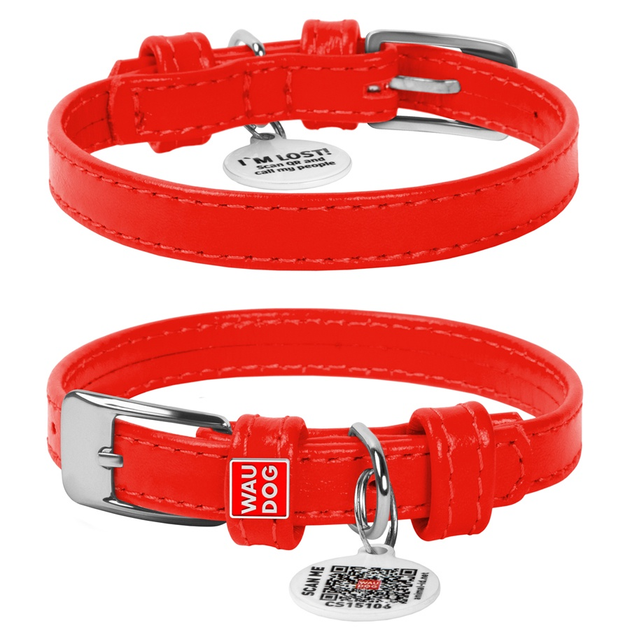 Шкіряний нашийник для собак WAUDOG Glamour з QR паспортом без прикрас XS Ш 12 мм 21-29 см Red (32563)