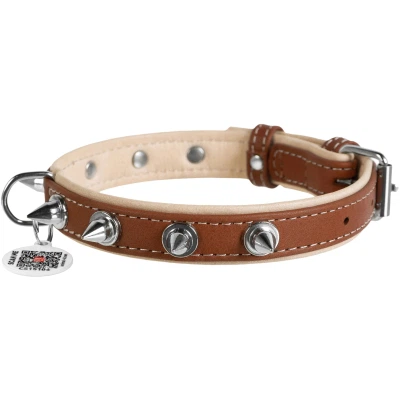 Нашийник для тварин WAUDOG Soft з QR паспортом із шипами Ш 35 мм Д 57-71 см коричневий (7224)