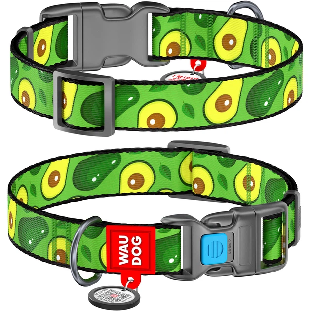 Нашийник для собак нейлоновий WAUDOG Nylon з QR паспортом, малюнок "Авокадо" 33-49 см 25 мм (4763)