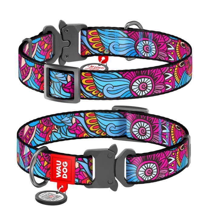 Нашийник для тварин WAUDOG Nylon з QR паспортом "Вітраж" металева пряжка-фастекс М (5175) 5175