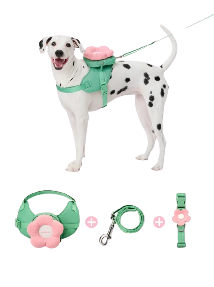 Комплект квітка 3в1 для собак Vetreska Flora шлейка-рюкзак, нашийник і повідець (S)