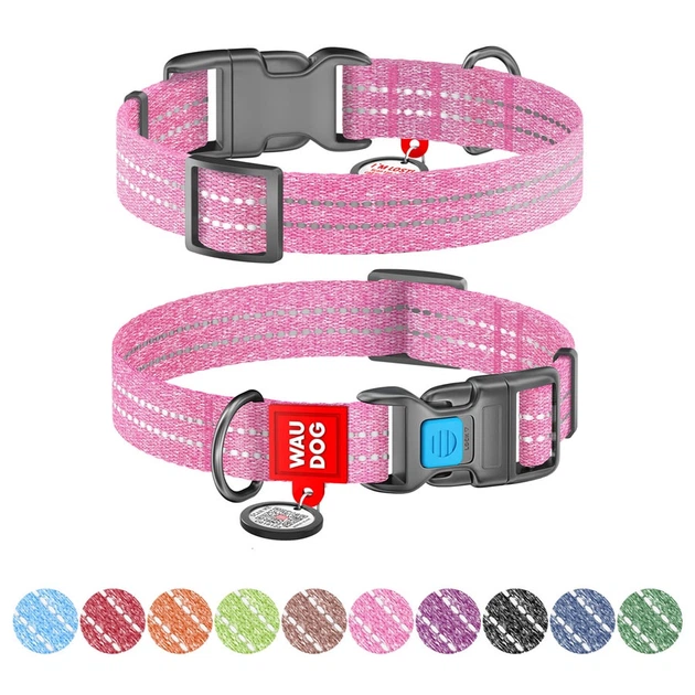 Нашийник для собак WAUDOG Re-cotton рожевий, з QR-паспортом, світловідбиваючий, відновлена бавовна, 37–58 см, ширина 25 мм,