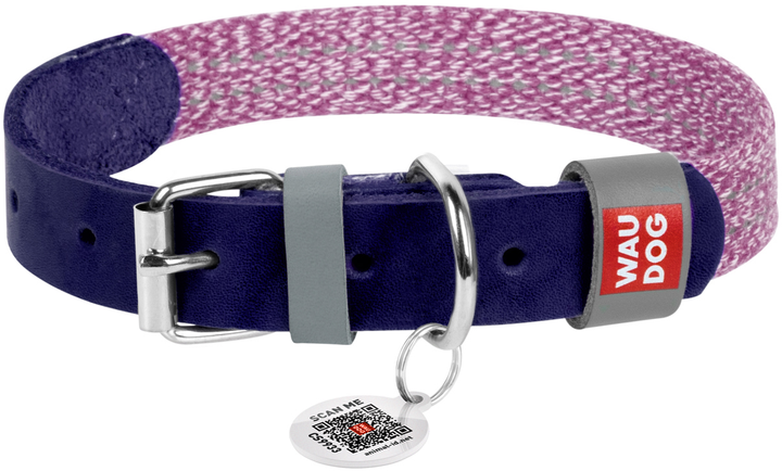 Нашийник для собак зі шкіри та відновленої бавовни WAUDOG Classic M 20 мм х 30-39 см Фіолетовий (58929Collar)