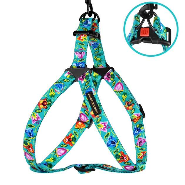 Шлея для Собак BronzeDog Urban Квіти Нейлонова Ментол 16 мм 40-53 см (70/1413)