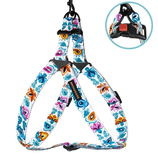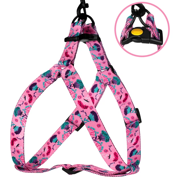 Шлея для Собак BronzeDog Urban Квіти Нейлонова Рожева 16 мм 40-53 см (70/1407)