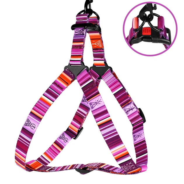 Нейлонова шлейка з ручкою для собак WAUDOG Nylon з QR паспортом, з малюнком "Фіолетовий камо", розмір S (5462)