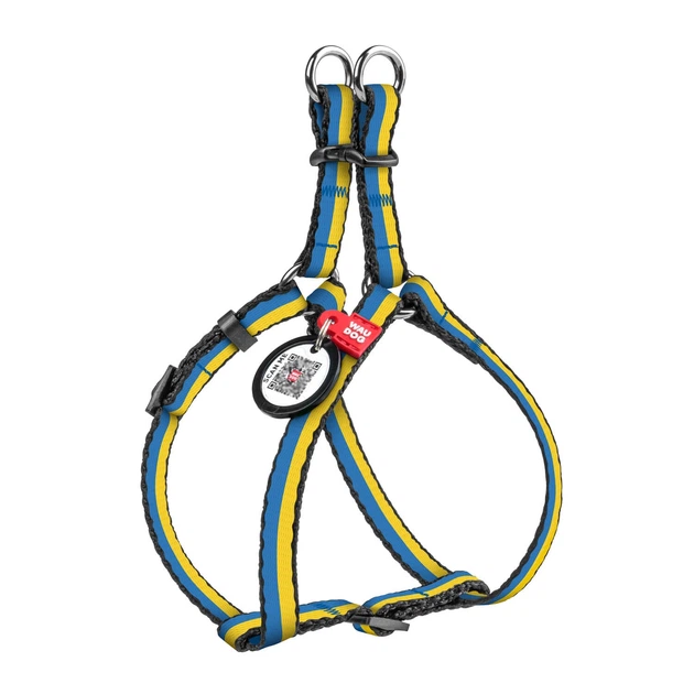 Шлея для котів та дрібних порід собак WAUDOG Nylon c QR паспортом, малюнок "Colors of freedom", пластиковий фастекс, XS, 28-