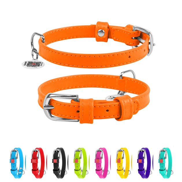 Ошейник для собак шкіряний WAUDOG Glamour з QR паспортом, без прикрас, S, Ш 15 мм, Дов 27-36 см помаранчевий