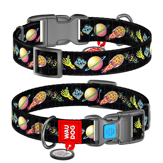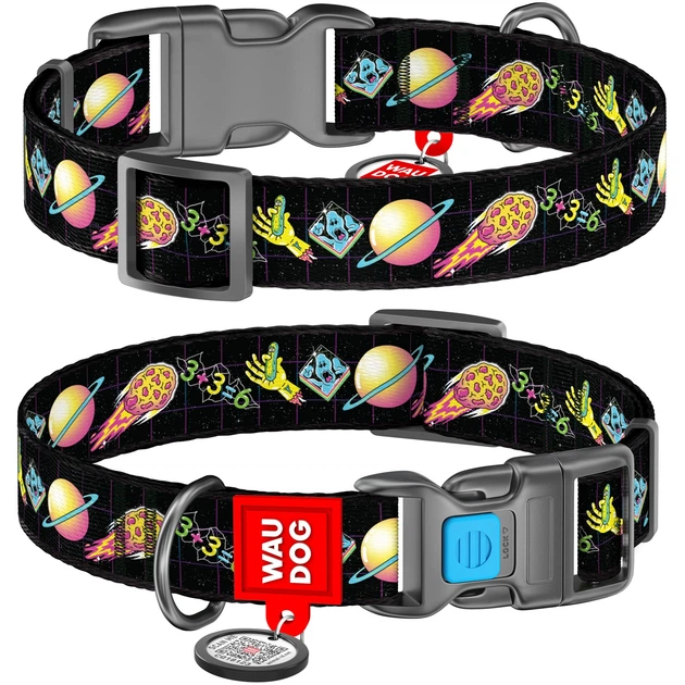 Шлей для котів та дрібних порід собак WAUDOG Nylon з QR паспортом малюнок "Нескінченні світи" пластиковий фастекс XS Ш 10 мм