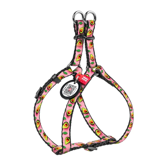 Шлей для котів та дрібних порід собак WAUDOG Nylon з QR паспортом, малюнок "Авокадо на розовому", пластиковий фастекс, XS, Ш