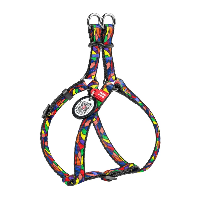 Шлея для собак анатомічна WAUDOG Nylon з QR паспортом, малюнок "Colors of freedom", пластиковий фастекс, XS, Ш 10 мм, Дов 28